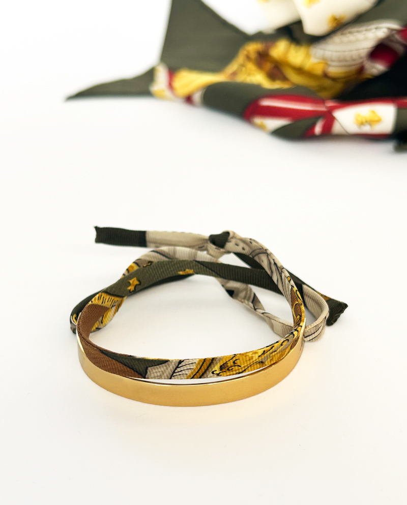 Manchette dorée à l’or fin & soie vintage – HERITAGE